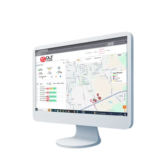 O Gestão OLT inclui tudo o que o Monitora OLT oferece, além de mapas de monitoramento em tempo real, provisionamento automatizado e scripts personalizados. Ele reduz falhas operacionais, melhora a eficiência da equipe técnica e torna a expansão da rede mais rápida e segura.